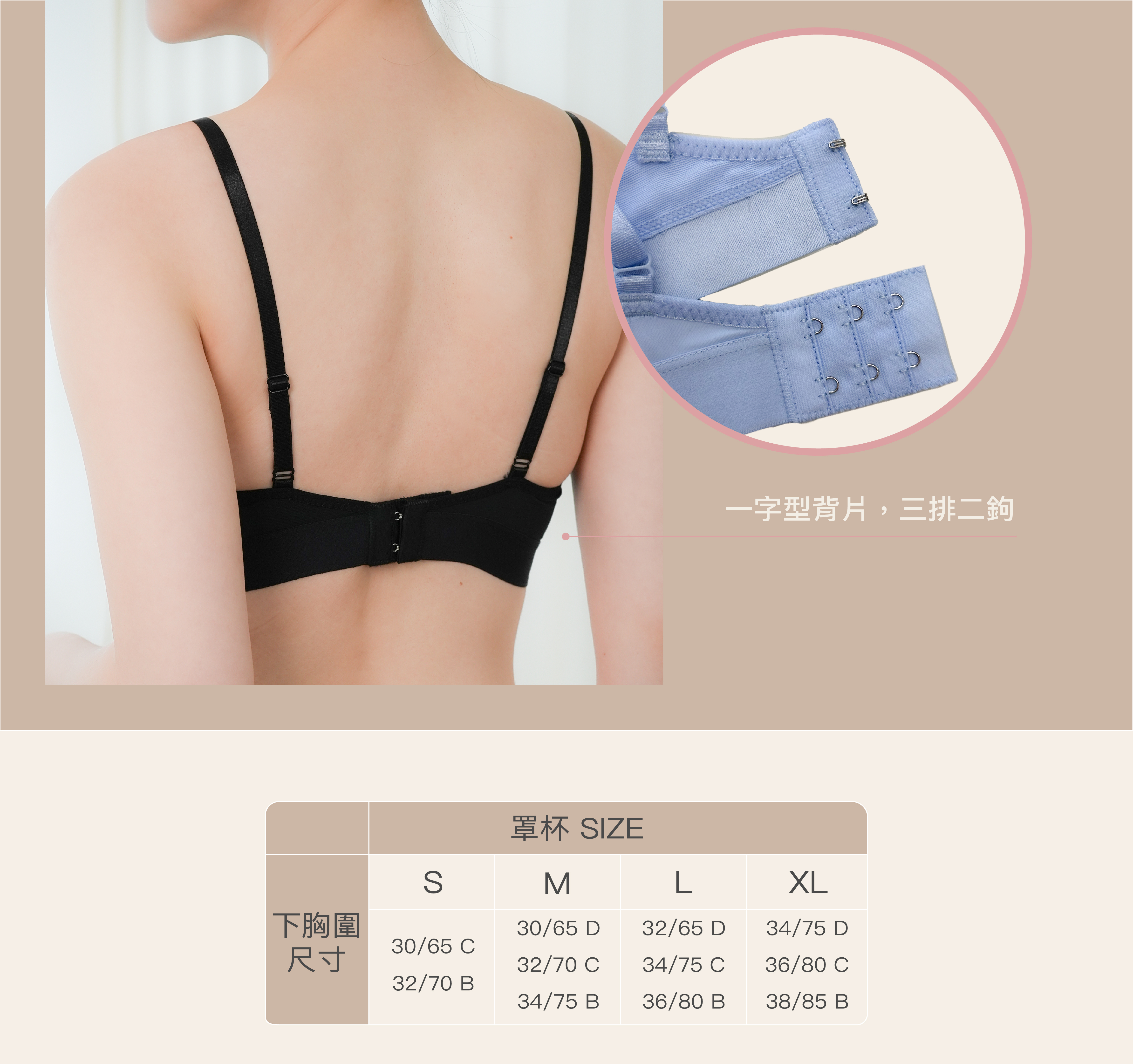 - 輕盈無鋼圈讓胸型更立體、背線更美